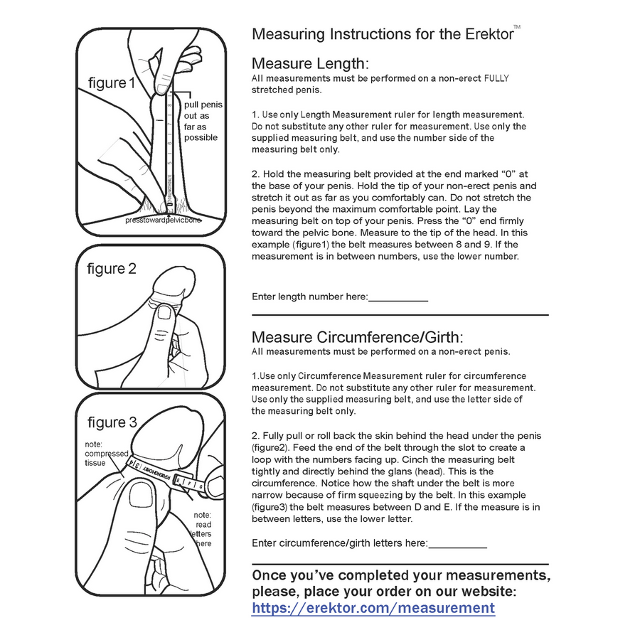 All measurements must be performed on a non-erect FULLY stretched penis.