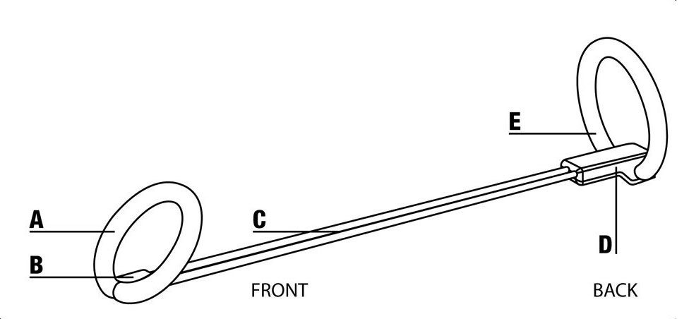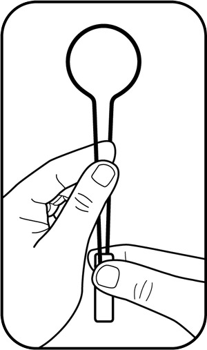 Insert your penis head under the flexible front loop, then center the rods and squeeze the front loop together so the loop closes into a circle.