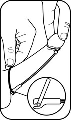 Move the sliding latch forward all the way, tightening the flexible loop. The sliding latch locks the flexible loop around the penis head.