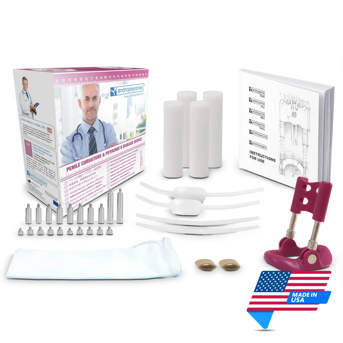 The Andropeyronie traction device can be used for the management of Peyronie’s disease and for men with a retracted penis. With repeated use over 6 months or more in accordance with the manufactures directions it can both improve penile curvature and lengthen the penis.