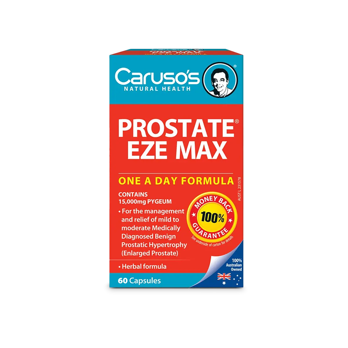 Caruso’s Prostate EZE Max has been formulated and clinically trialled for the symptomatic relief of medically diagnosed Benign Prostatic Hypertrophy (BPH).