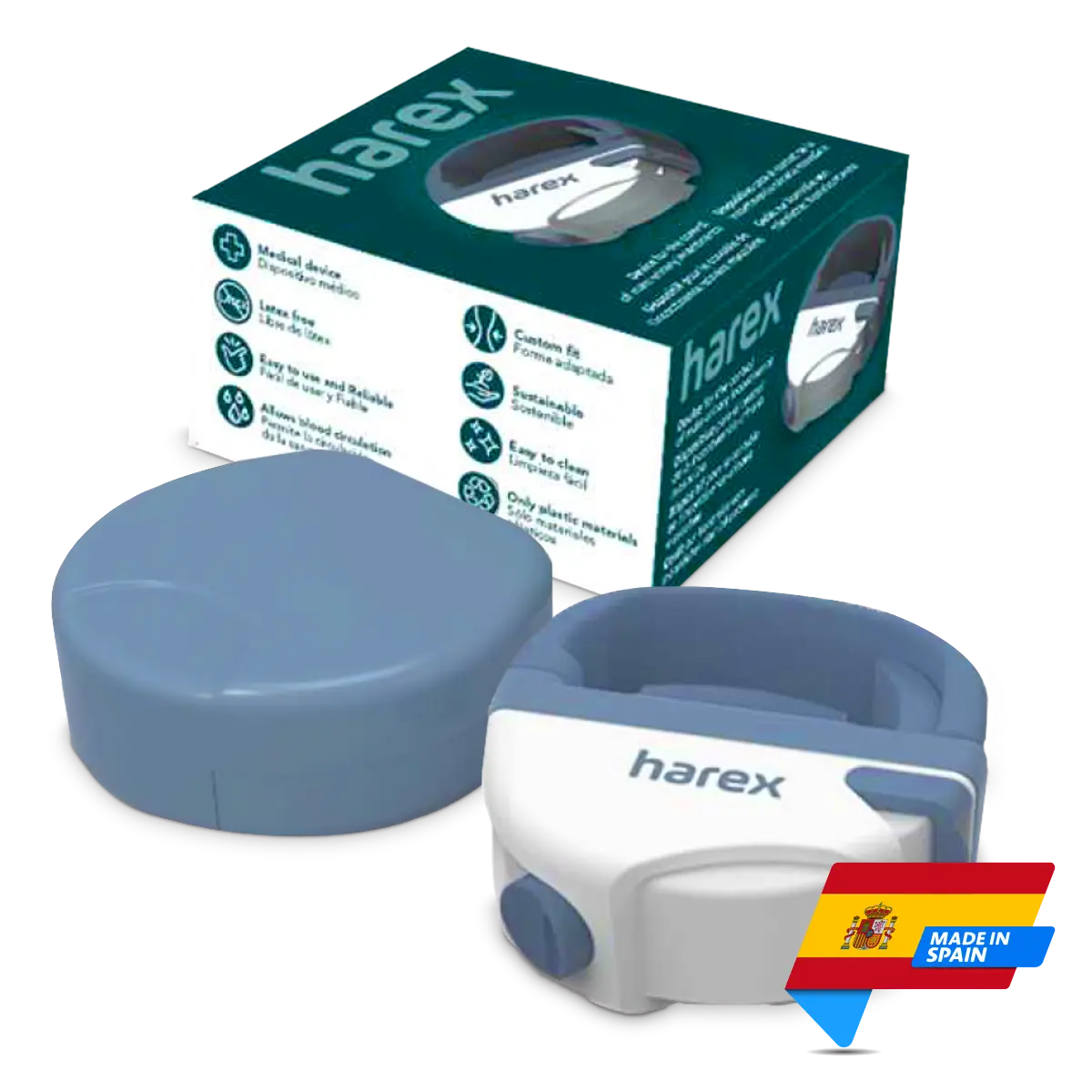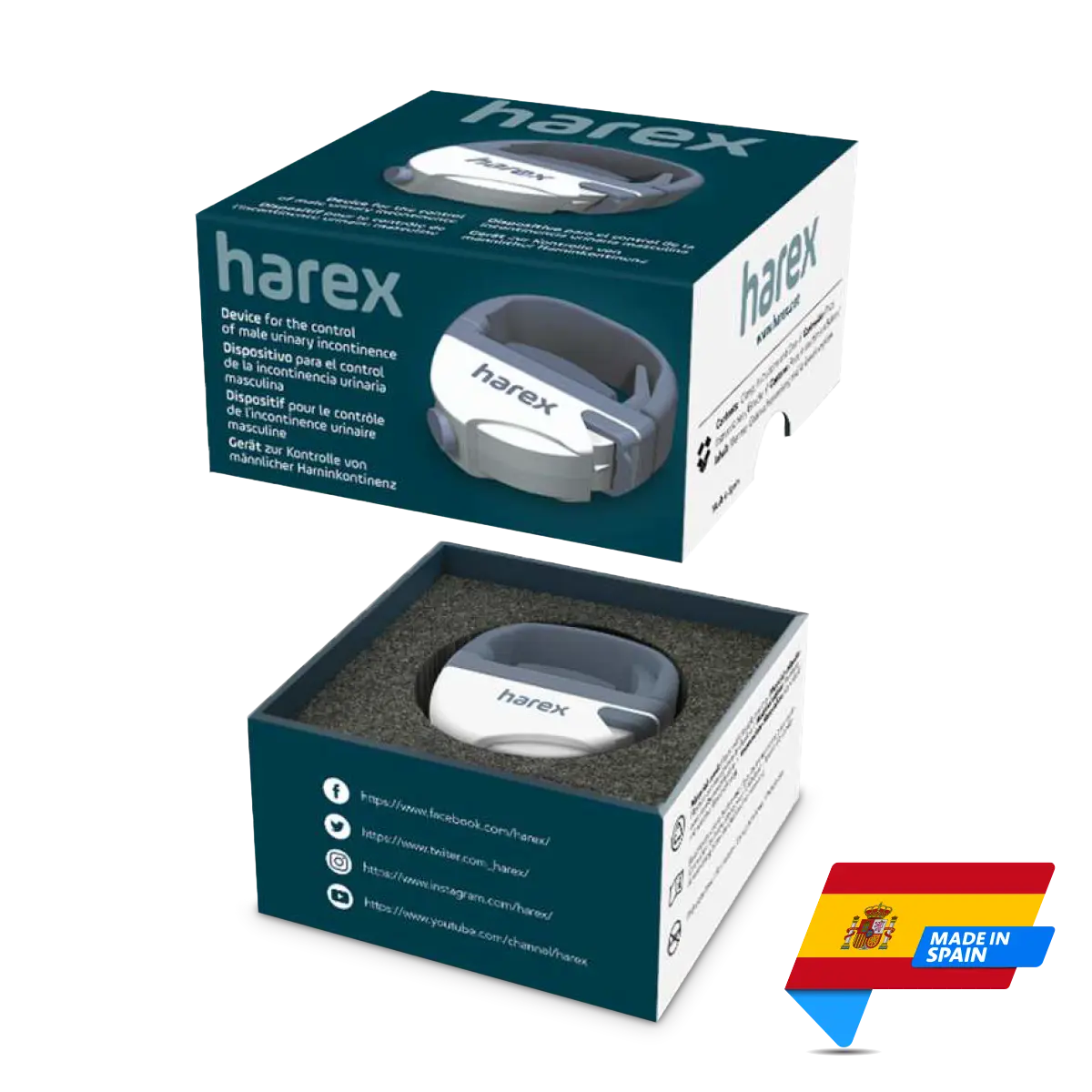 HAREX is a medical device that is placed just below the head of the penis and by gentle pressure on the urethra, stops the flow of urine, preventing and controlling involuntary leakage of urine.