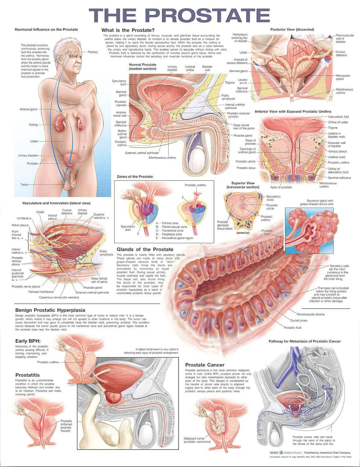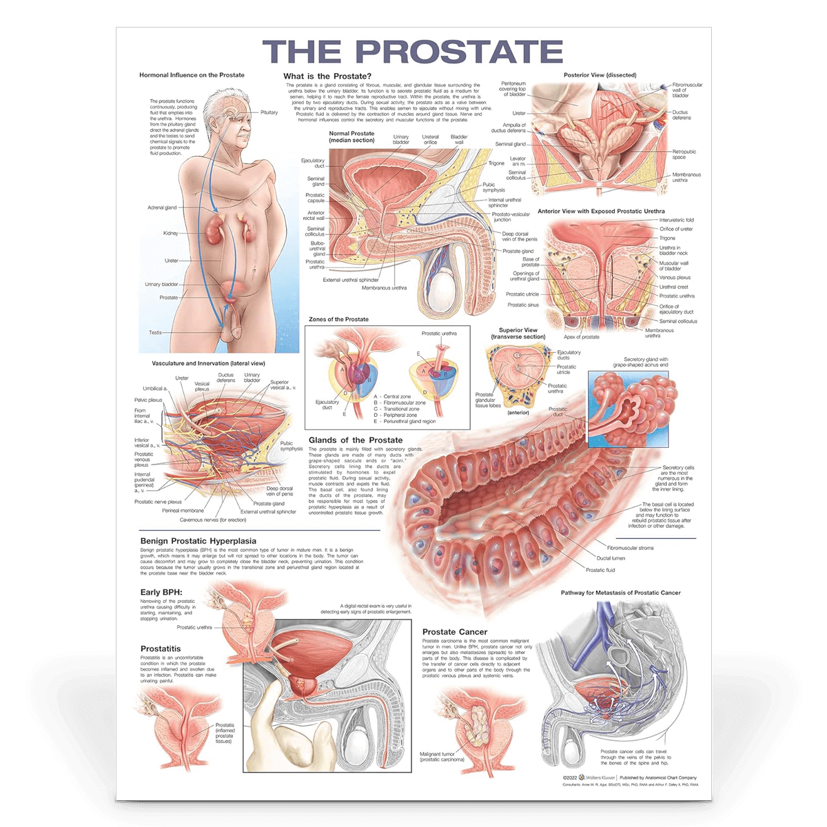 The Prostate anatomical poster defines the prostate and shows several views of the prostate and surrounding structures.