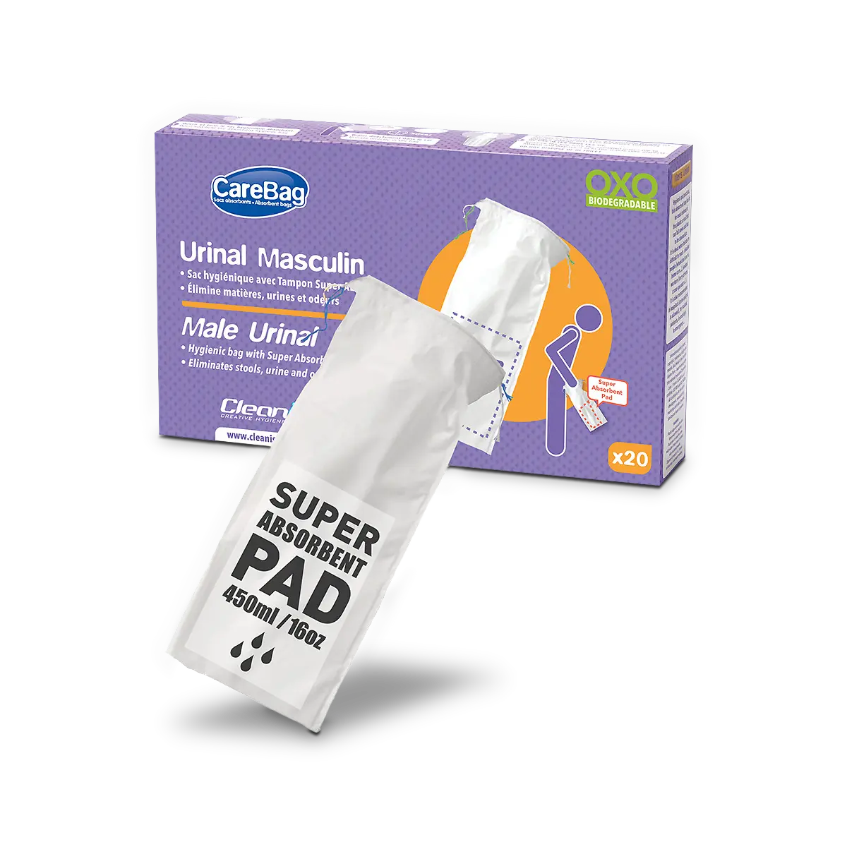 Carebag Medical Grade Male Urinal Bag with Super Absorbent Pad, 20 Count – Travel Urinal for Men – 20 Disposable Bedside Urinal Bottle Bags – Leak-Resistant