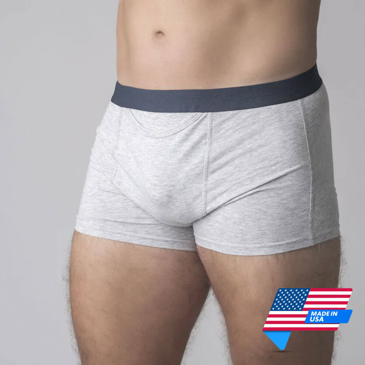 Snowballs are available in manly gray with a fetching dark blue waistband.