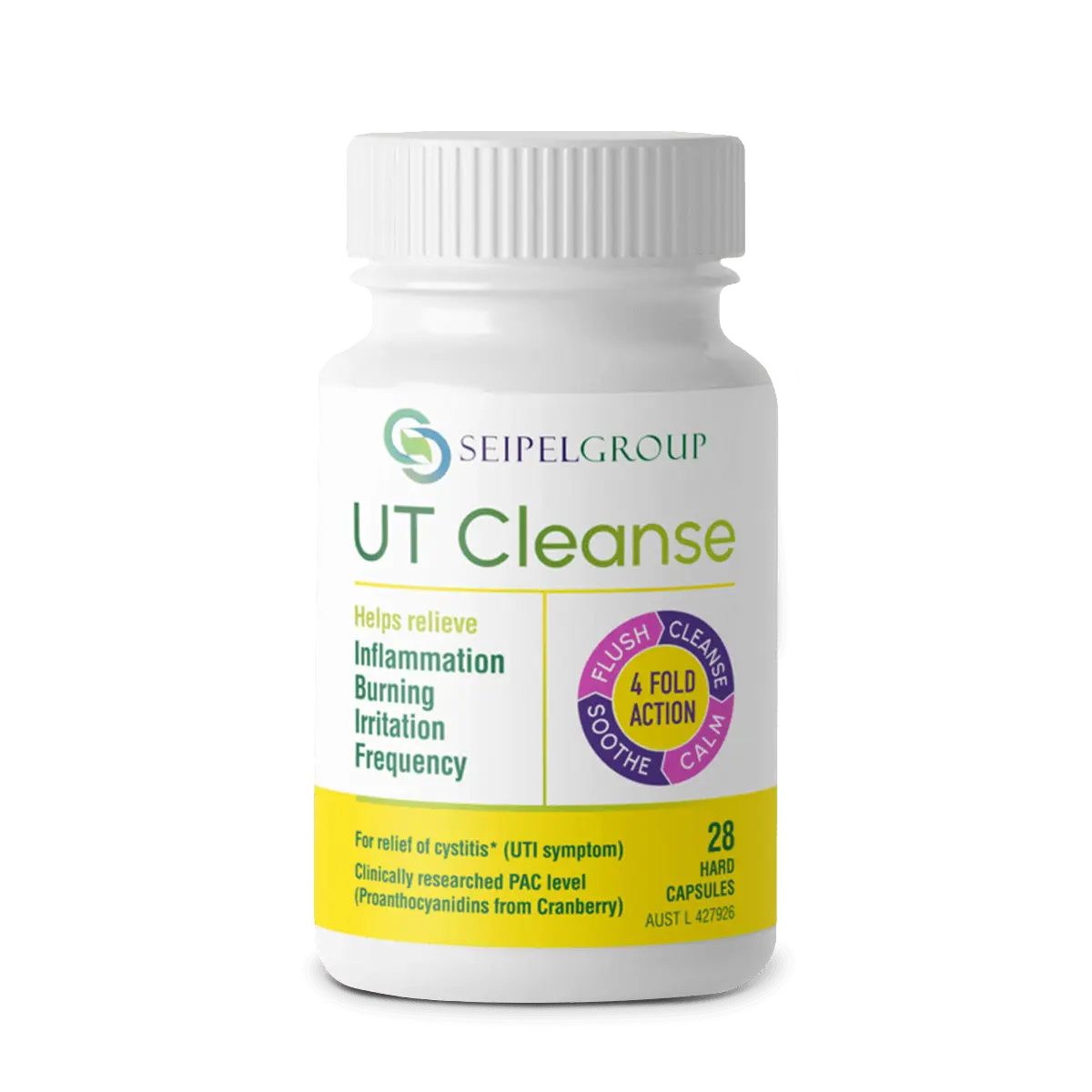 UT Cleanse with clinically researched PACs level for relief of cystitis (UTI) symptoms. Reduce occurrence and irritation of medically-diagnosed cystitis with unique 4-fold action.